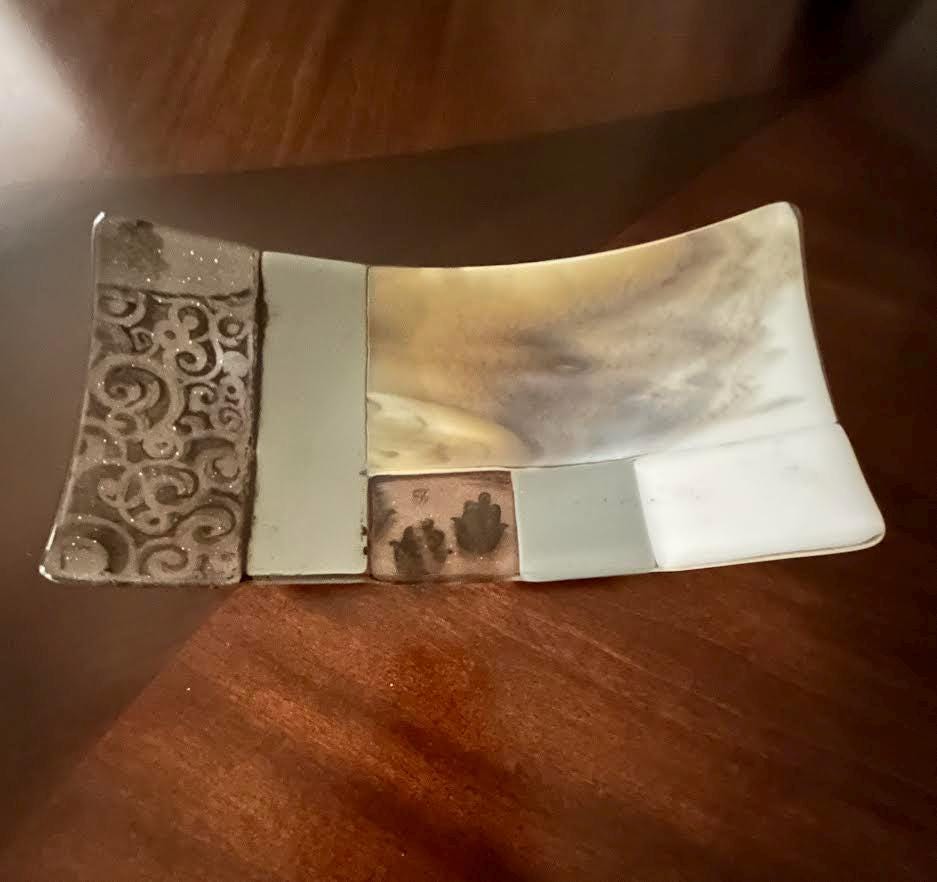 -Handcrafted fused glass tray